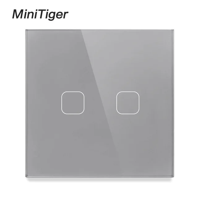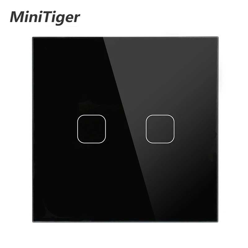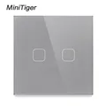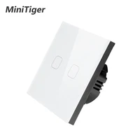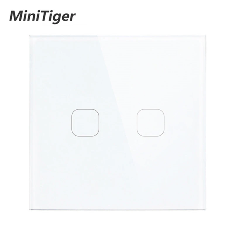 אביזרי תאורה Minitiger EU/UK Standard AC 170-250V White Luxury Glass Panel 2 gang 1 way Touch Wall Sensor Light Switch